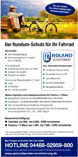 Wir bieten Ihnen in Zusammenarbeit mit der Ammerländer Versicherung eine Fahrrad-Vollkaskoversicherung und somit einen Rundum-Schutz gegen die Tücken des „Fahrrad-Alltages“.